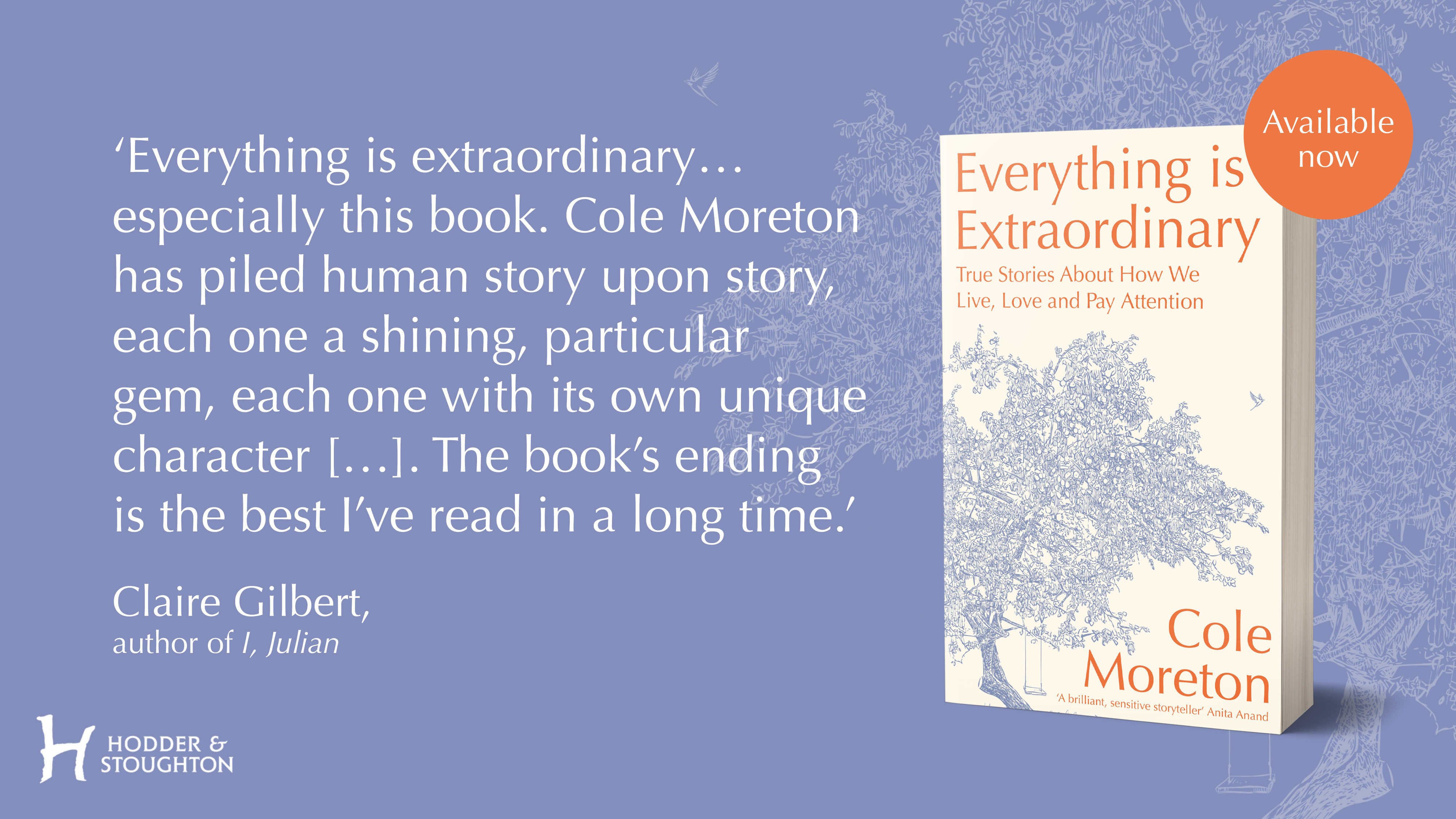 Cole’s podcast Can We Talk? is a series of crafted true short stories about encounters with remarkable people and what we can learn from them. They include the likes of Scarlett Johansson and Nelson Mandela as well as Zahra, a refugee who crossed the Channel on an overladen rubber boat one Christmas morning. The podcast led to his new book Everything Is Extraordinary: True Stories About How We Live, Love and Pay Attention (Hodder).